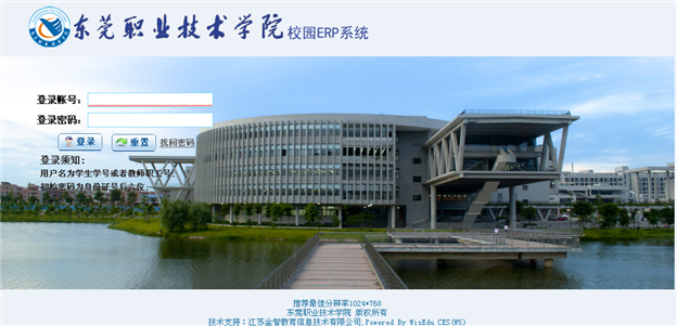 1、网址:http://erp.dgpt.edu.cn/login.portal内外网皆可登录。