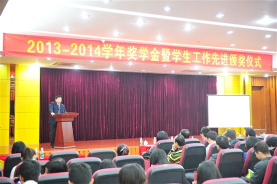 12月31日上午,2013-2014学年奖学金暨学生工作先进颁奖仪式在行政楼B201举行。院党委书记朱益民,院党委副书记、纪委书记莫强,副院长李奎山、杨云奇等出席了颁奖仪式。各系部和有关处室的负责同志、全体辅导员以及各系获奖老师、学生代表约400人参加了仪式。颁奖仪式由副院长李奎山主持。