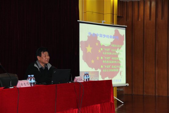 曾教授结合当代历史背景,主要从三个方面进行“中国梦”的解读。一、“中国梦”的由来及内涵;二、结合中国历史,阐述中国追梦的原因;三、中国今日该如何“圆梦”。曾教授指出,“中国梦”是凝聚了中华历史的梦想,大至中国,小至个人,每个人心中都有梦,都应该积极去追梦,梦想并不遥远,要把自己的梦和“中国梦”相融合,更要把梦想和行动结合起来追梦。曾教授还展望了圆梦的前景,指出在中国共产党的领导下,只要坚持走中国特色社会主义道路,中华民族将会在21世纪实现伟大的民族复兴。在两个小时的讲座中,曾教授用诙谐的语言,引经据典,深入浅出地为我们解读了“中国梦”。他用广博的知识、深刻的见解、详实的数据及通俗形象的语言给在座的老师和同学们上了精彩的一课。同学们深深为教授的风采折服,同时对中国梦有了更深刻的认识。