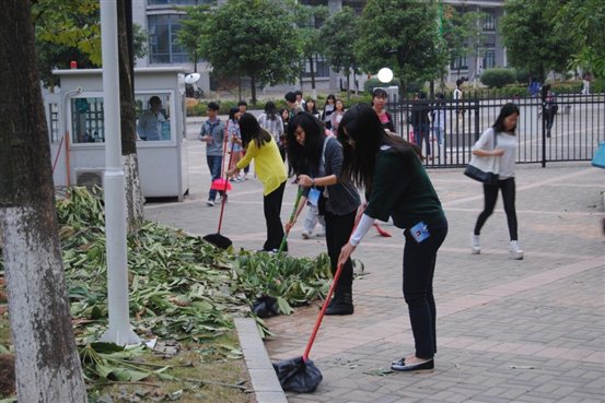 经过同学们的辛勤劳动后,学生宿舍区有了很大改善,基本恢复了往日的美丽、整洁。天灾无情,人有情!这就是东职学子的爱校之情!