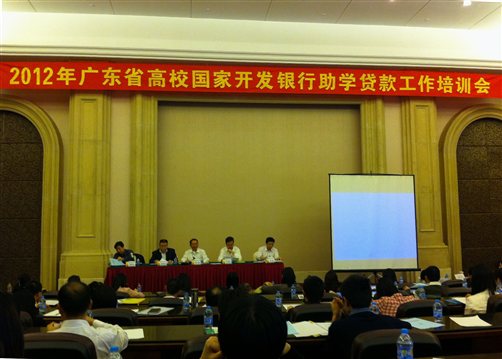 2012年3月29日-3月30日,国家助学贷款工作培训会议在佛山召开。广东省教育厅巡视员李小鲁、国家开发银行总行评审三处处长刘有怀、国开行广东省分行副行长张英慧、广东省资助中心相关领导及全省121所高校参加了会议。我院学生处李欣妤、何璐两位老师参加了此次会议。