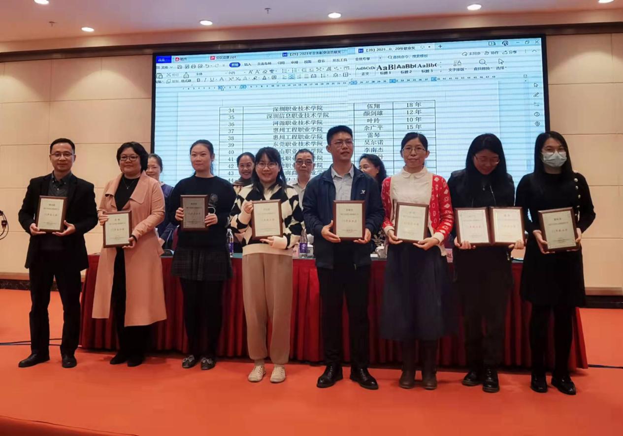 本次年会还表彰了一批先进单位和个人。我校作为全省第一批通过验收的院校之一,被正式授予“广东省高校大学生心理素质拓展训练基地”牌匾;校心理健康教育与咨询中心荣获“2020-2021年度广东省高校心理健康教育与咨询工作先进集体 ”;专职心理老师吴尔诺荣获“广东省高校心理健康教育与咨询工作10年敬业奖”;专兼职心理老师何伊丽、黄丽军分别荣获“2021年广东省心理健康教育与咨询先进个人”称号;我校提供的心理健康教育成果参与了2021年广东省学校“三全育人”和高校课程思政建设成果展并获得表彰。