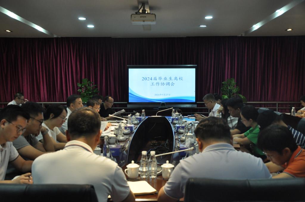 最后,杨云奇副校长在总结讲话中强调,毕业生离校工作是学校日常且重要的一项工作,面对每年的新情况,各职能部门一要梳理工作清单,主动和其他相关部门沟通落实各项各种开展情况;二要从管理、服务角度出发,竭诚为同学们服务,站在为学生负责任的角度看待问题。三要加强毕业生安全、文明离校教育,开展丰富有效的活动,确保2024届毕业生顺利离校、开心离校。