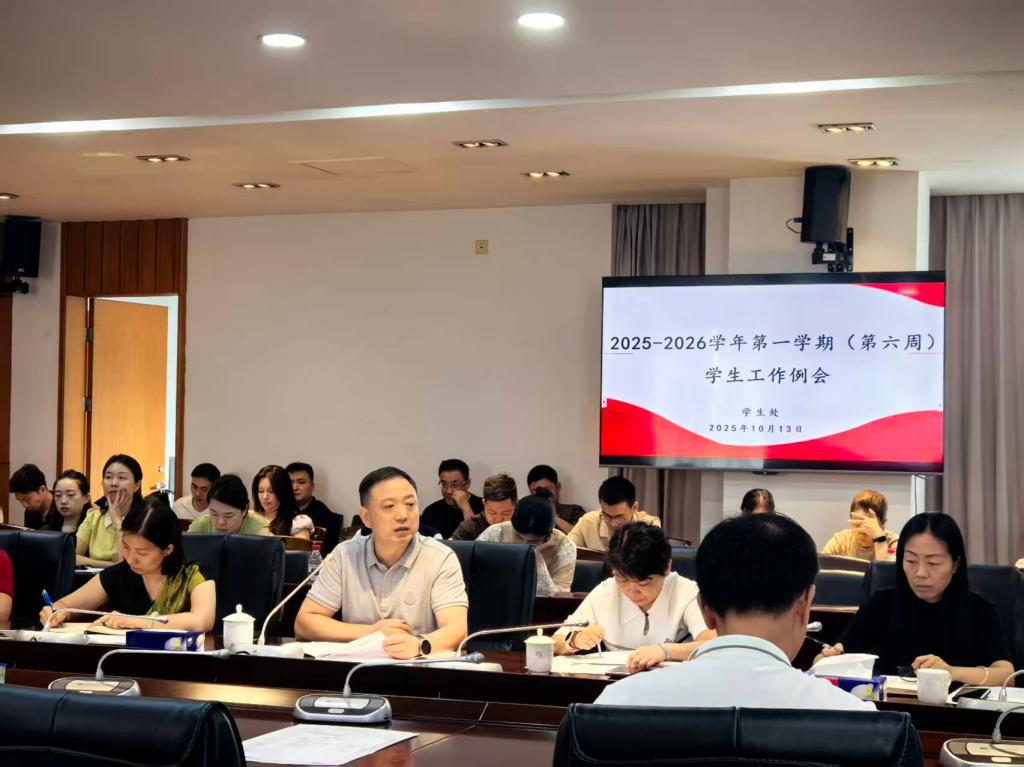 10月13日上午,我校在立德楼B415召开了第六周学生工作例会,校党委委员、副校长杨云奇出席会议。学生处、保卫处、财务处等相关职能部门负责人、各二级学院党总支副书记、全体辅导员参加本次会议。