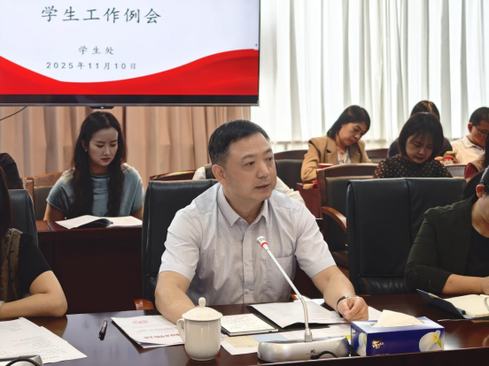 杨云奇副校长在听取各项工作情况后,肯定了学生处近期的工作成效,同时对下一阶段的学工队伍建设、学风建设和就业等工作进行了部署,他提出,全体学工队伍特别是辅导员要坚守育人情怀,不断提升工作能力与业务水平,将工作部署转化为具体行动,全面了解学生思想动态,定期复盘工作进度,以工作实效护航人才培养与学生发展。
